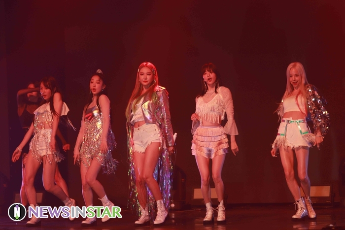 15일 오후 서울시 용산구 한남동 블루스퀘어에서 걸그룹 EXID의 새 미니 앨범 'WE'의 쇼케이스가 열려 타이틀곡 "ME&YOU' 무대를 선보이고 있다.