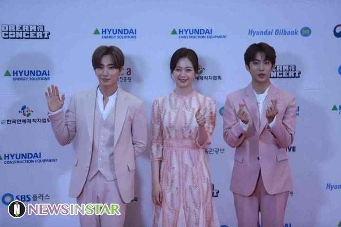 18일 오후 서울시 마포구 월드컵로 서울월드컵경기장에서 '제 25회 2019 드림콘서트'의 레드카펫 포토월 행사가 진행돼 MC 이특X전소민X공찬이 포토타임을 갖고 있다.