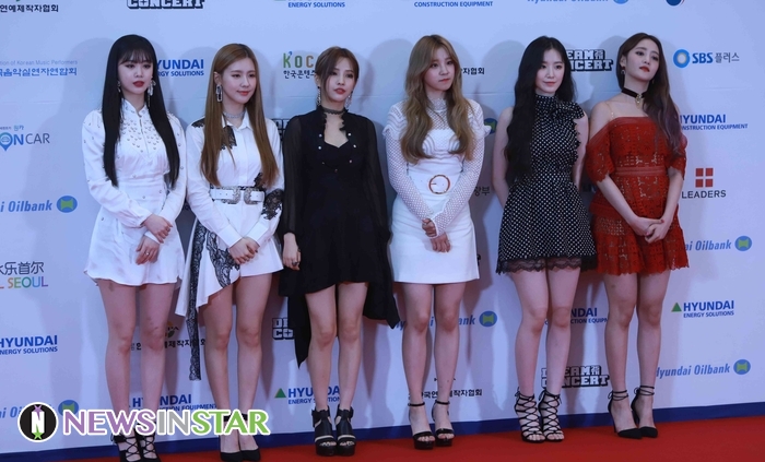 18일 오후 서울시 마포구 월드컵로 서울월드컵경기장에서 '제 25회 2019 드림콘서트'의 레드카펫 포토월 행사가 진행돼 (여자)아이들이 포토타임을 갖고 있다.