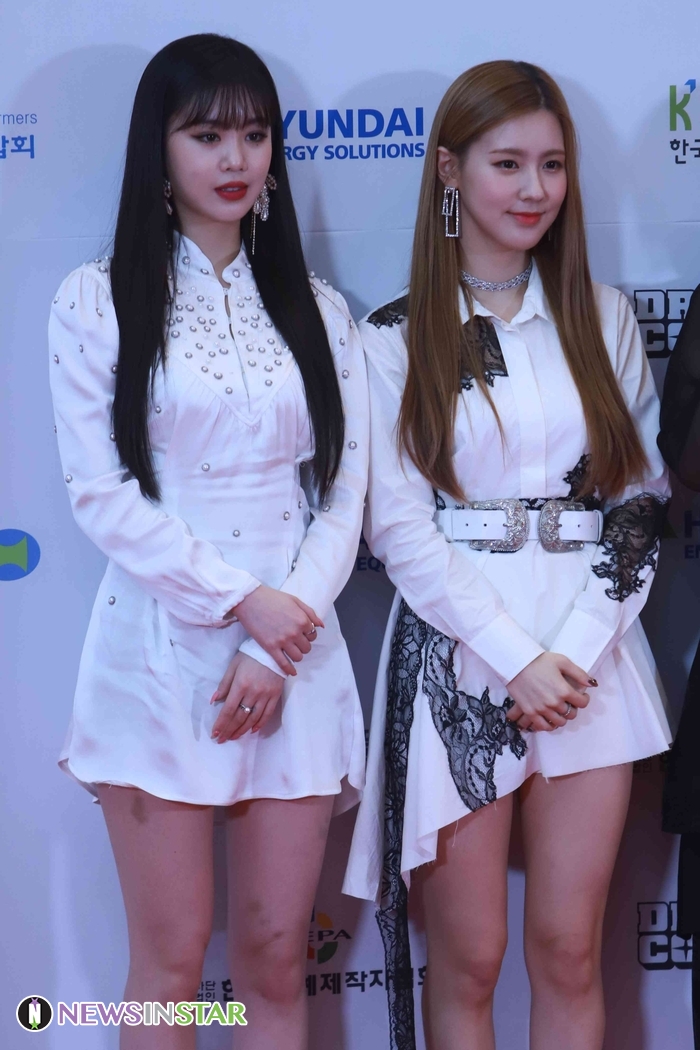 18일 오후 서울시 마포구 월드컵로 서울월드컵경기장에서 '제 25회 2019 드림콘서트'의 레드카펫 포토월 행사가 진행돼 (여자)아이들 수진X미연이 포토타임을 갖고 있다.