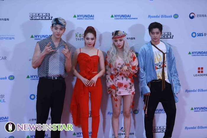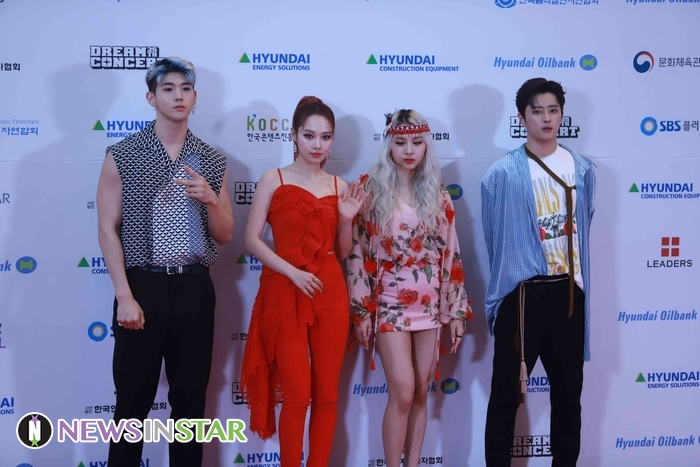 18일 오후 서울시 마포구 월드컵로 서울월드컵경기장에서 '제 25회 2019 드림콘서트'의 레드카펫 포토월 행사가 진행돼  KARD가 포토타임을 갖고 있다.