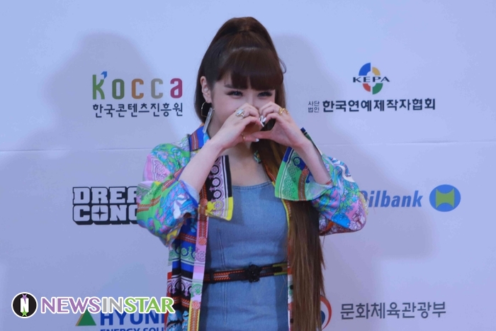 18일 오후 서울시 마포구 월드컵로 서울월드컵경기장에서 '제 25회 2019 드림콘서트'의 레드카펫 포토월 행사가 진행돼 박봄이포토타임을 갖고 있다.