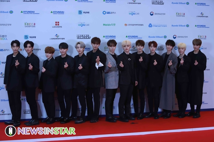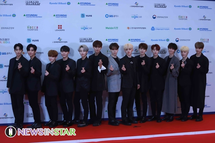 18일 오후 서울시 마포구 월드컵로 서울월드컵경기장에서 '제 25회 2019 드림콘서트'의 레드카펫 포토월 행사가 진행돼 세븐틴이 포토타임을 갖고 있다.