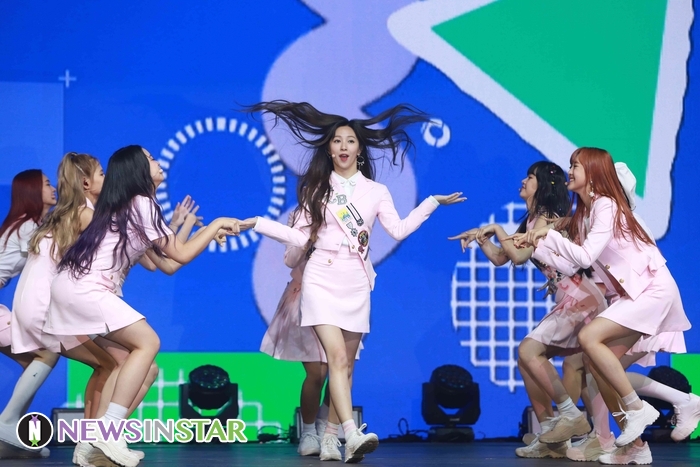 22일 오후 서울시 광진구 광장동 YES24라이브홀에서 걸그룹 체리블렛의 두 번째 싱글 '러브 어드벤처(LOVE ADVENTURE)' 발매 기념 쇼케이스가 열려 수록곡 '탁구공' 무대를 선보이고 있다.