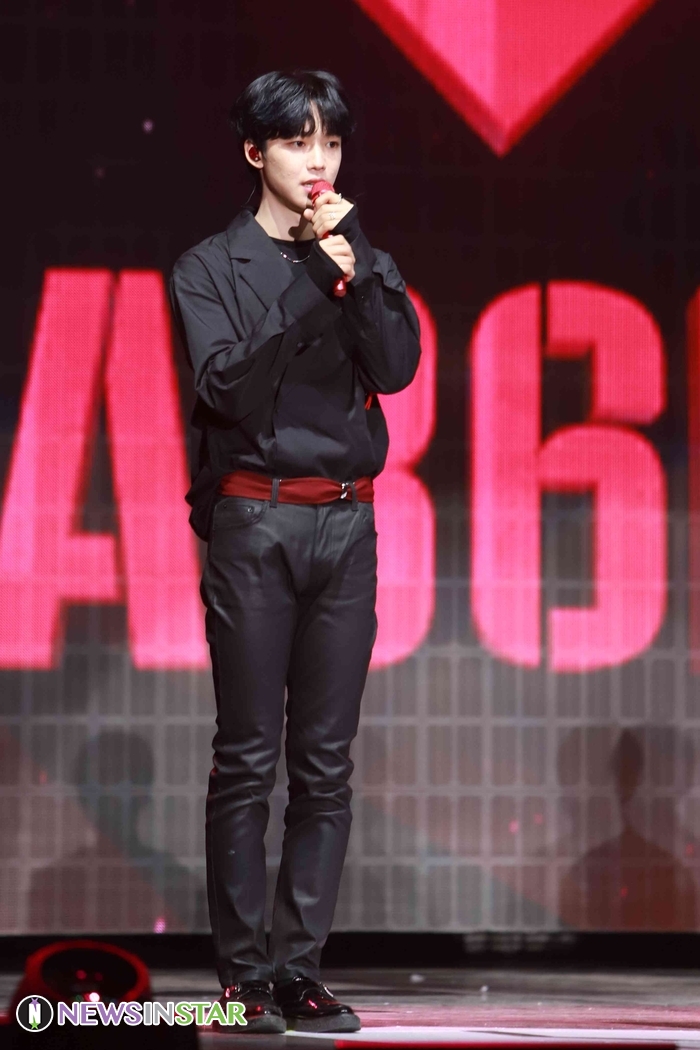 22일 서울시 송파구 방이동 올림픽공원 올림픽홀에서 보이그룹 AB6IX(임영민X김동현X이대휘X박우진X전웅)의 데뷔앨범 ‘B:COMPLETE’ 발매 기념 쇼케이스가 열려 리더 임영민이 대표로 인사하고 있다.