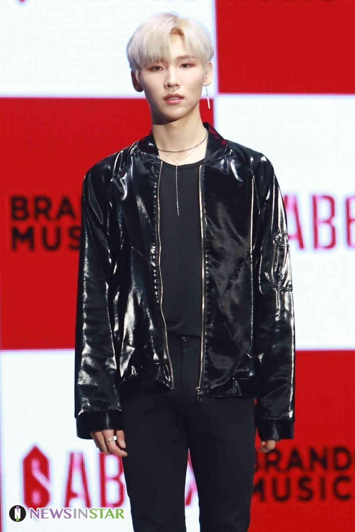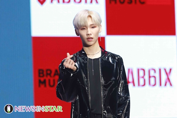 22일 서울시 송파구 방이동 올림픽공원 올림픽홀에서 보이그룹 AB6IX(임영민X김동현X이대휘X박우진X전웅)의 데뷔앨범 ‘B:COMPLETE’ 발매 기념 쇼케이스 열려  전웅이 참석해 포토타임을 갖고 있다.