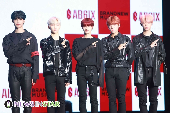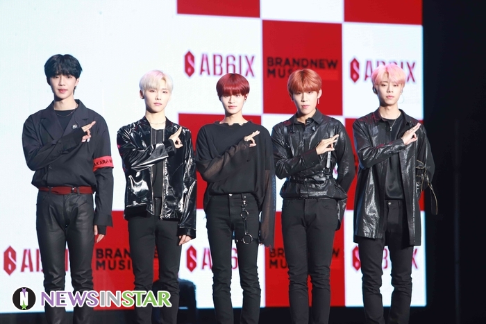 22일 서울시 송파구 방이동 올림픽공원 올림픽홀에서 보이그룹 AB6IX(임영민X김동현X이대휘X박우진X전웅)의 데뷔앨범 ‘B:COMPLETE’ 발매 기념 쇼케이스가 열려 단체 포토타임을 갖고 있다.