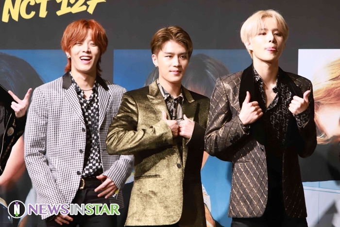 24일 오후 서울시 영등포구 여의도동 콘래드 서울에서 NCT127의 새 앨범 ‘#127 WE ARE SUPERHUMAN’ 제작발표회가 열려 NCT127 유타X태일X정우가 포토타임을 갖고 있다.