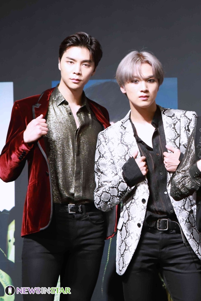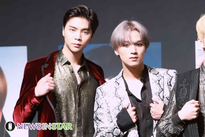 24일 오후 서울시 영등포구 여의도동 콘래드 서울에서 NCT127의 새 앨범 ‘#127 WE ARE SUPERHUMAN’ 제작발표회가 열려 NCT127 쟈니X해찬이 포토타임을 갖고 있다.