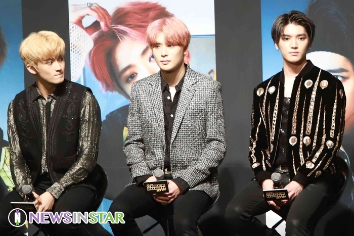24일 오후 서울시 영등포구 여의도동 콘래드 서울에서 NCT127의 새 앨범 ‘#127 WE ARE SUPERHUMAN’ 제작발표회가 열려 NCT127 마크X재현X태용이 기자 간담회를 준비하고 있다.