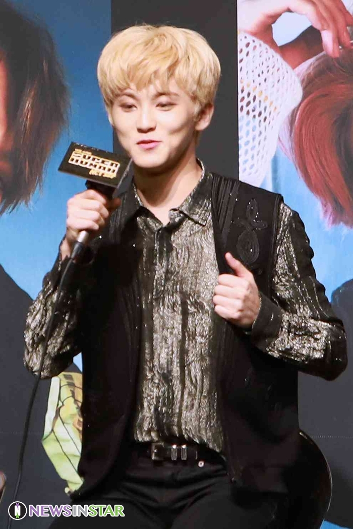 24일 오후 서울시 영등포구 여의도동 콘래드 서울에서 NCT127의 새 앨범 ‘#127 WE ARE SUPERHUMAN’ 제작발표회가 열려 NCT127 마크가 기자 간담회를 준비하고 있다.