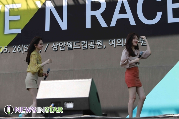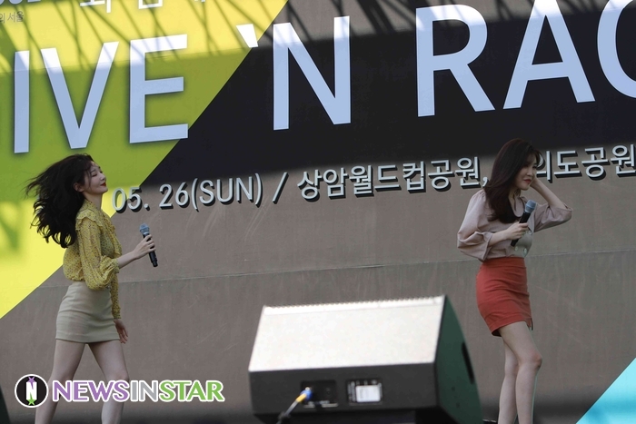 26일 오전 서울시 영등포구 여의도동 여의도공원에서 제4회 메르세데스-벤츠 '기브앤레이스'가 열려 가수 다비치(이해리, 강민경)가 화려한 무대를 선보이고 있다.