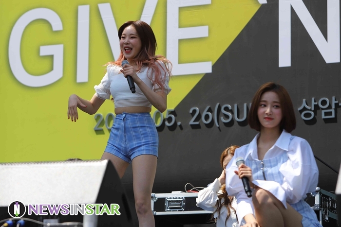 26일 오전 서울시 영등포구 여의도동 여의도공원에서 제4회 메르세데스-벤츠 '기브앤레이스'가 열려 걸그룹 모모랜드(혜빈, 연우, 제인, 나윤, 주이, 아인, 낸시, 태하, 데이)가 화려한 무대를 선보이고 있다.