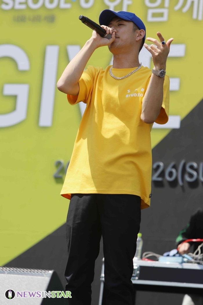 26일 오전 서울시 영등포구 여의도동 여의도공원에서 제4회 메르세데스-벤츠 '기브앤레이스'가 열려 빈지노가 화려한 무대를 선보이고 있다.
