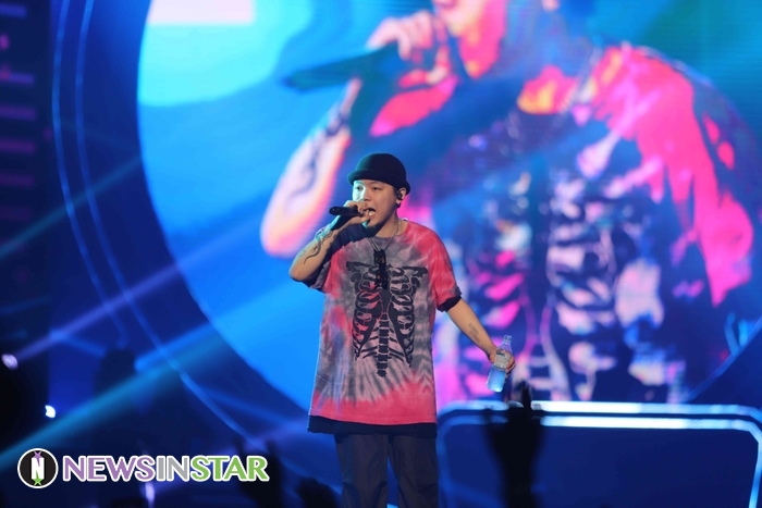 1일 오후 서울시 송파구 방이동 올림픽공원 핸드볼경기장에서 국내 최고 힙합 뮤지션들의 라이브콘서트 '지니뮤직 페스티벌 2019'이 열려 뮤지션 노엘이 참석해 열정적인 무대를 선보이고 있다.