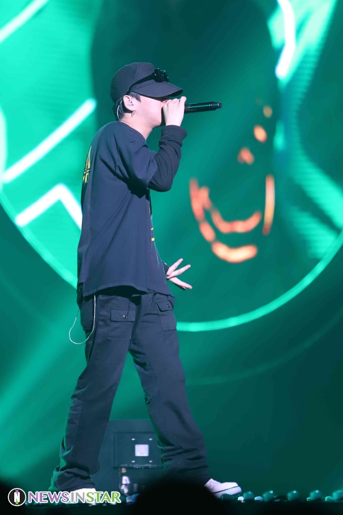 1일 오후 서울시 송파구 방이동 올림픽공원 핸드볼경기장에서 국내 최고 힙합 뮤지션들의 라이브콘서트 '지니뮤직 페스티벌 2019'이 열려 뮤지션 영비가 참석해 열정적인 무대를 선보이고 있다.
