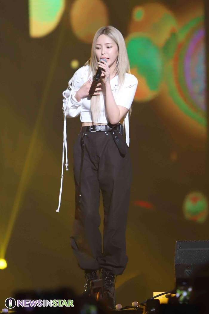 1일 오후 서울시 송파구 방이동 올림픽공원 핸드볼경기장에서 국내 최고 힙합 뮤지션들의 라이브콘서트 '지니뮤직 페스티벌 2019'이 열려 뮤지션 헤이즈가 참석해 열정적인 무대를 선보이고 있다.