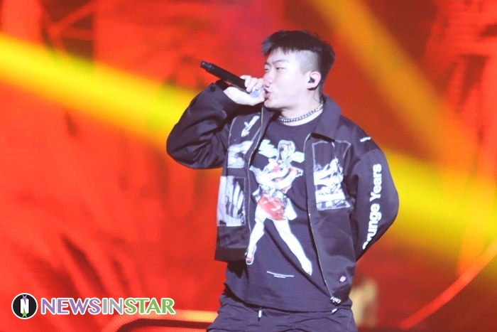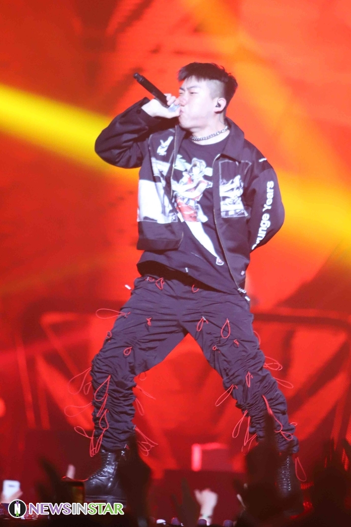 1일 오후 서울시 송파구 방이동 올림픽공원 핸드볼경기장에서 국내 최고 힙합 뮤지션들의 라이브콘서트 '지니뮤직 페스티벌 2019'이 열려 뮤지션 창모가 참석해 열정적인 무대를 선보이고 있다.