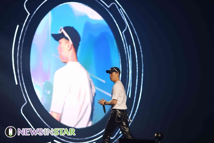 1일 오후 서울시 송파구 방이동 올림픽공원 핸드볼경기장에서 국내 최고 힙합 뮤지션들의 라이브콘서트 '지니뮤직 페스티벌 2019'이 열려 뮤지션 비와이가 참석해 열정적인 무대를 선보이고 있다.