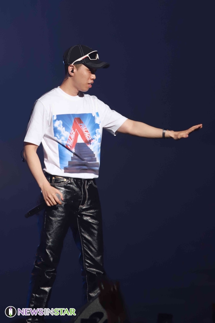 1일 오후 서울시 송파구 방이동 올림픽공원 핸드볼경기장에서 국내 최고 힙합 뮤지션들의 라이브콘서트 '지니뮤직 페스티벌 2019'이 열려 뮤지션 비와이가 참석해 열정적인 무대를 선보이고 있다.