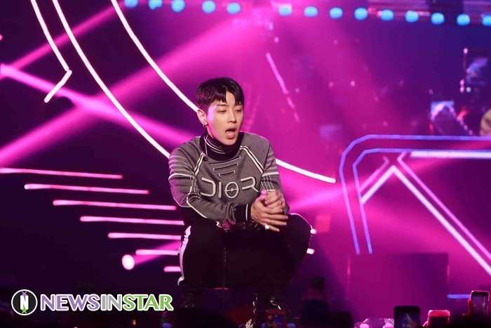 1일 오후 서울시 송파구 방이동 올림픽공원 핸드볼경기장에서 국내 최고 힙합 뮤지션들의 라이브콘서트 '지니뮤직 페스티벌 2019'이 열려 뮤지션 그레이가 참석해 열정적인 무대를 선보이고 있다.