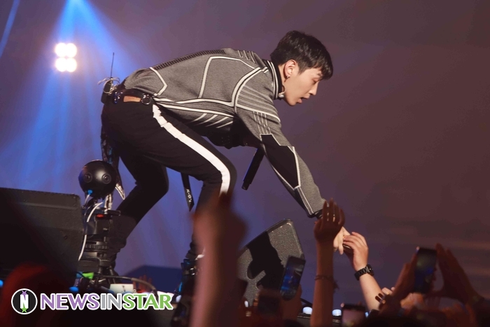 1일 오후 서울시 송파구 방이동 올림픽공원 핸드볼경기장에서 국내 최고 힙합 뮤지션들의 라이브콘서트 '지니뮤직 페스티벌 2019'이 열려 뮤지션 그레이가 참석해 열정적인 무대를 선보이고 있다.