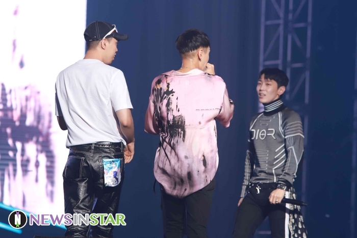 1일 오후 서울시 송파구 방이동 올림픽공원 핸드볼경기장에서 국내 최고 힙합 뮤지션들의 라이브콘서트 '지니뮤직 페스티벌 2019'이 열려 뮤지션 사이먼 도미닉, 그레이, 비와이가 참석해 열정적인 무대를 선보이고 있다.