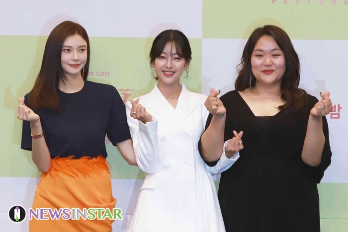 3일 오후 서울시 구로구 신도림동 라마다 서울 신도림에서 KBS 2TV 새 월화드라마 ‘퍼퓸’ 제작발표회가 열려 배우 차혜련X고원희X하재숙이 참석해 포토타임을 갖고 있다.