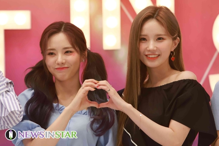 11일 오전 서울시 마포구 상암동 에스플렉스 센터 1층 tbs 오픈스튜디오에서 팩트인스타 ‘프로미스나인’ 녹화가 진행돼 fromis_9 송하영X박지원이 포토타임을 진행하고 있다