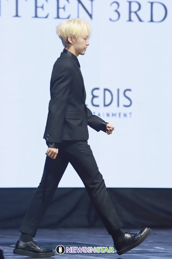 16일 오후 서울시 성북구 안암동 고려대학교 화정체육관에서 그룹 세븐틴(SEVENTEEN) 정규 3집앨범 'An Ode(언 오드)' 발매 기념 쇼케이스가 열려 호시가 포토타임을 위해 입장하고 있다.