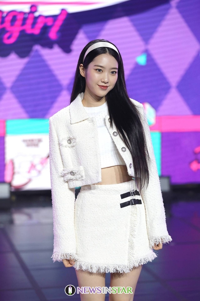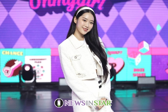 27일 오후 오마이걸(Oh My Girl) 아린, 승희, 지호, 효정, 비니, 유아, 미미의 미니 7집 앨범 ‘N(논스톱)’ 발매 기념 온라인 쇼케이스가 열려 오마이걸 지호가 포즈를 취하고 있다.