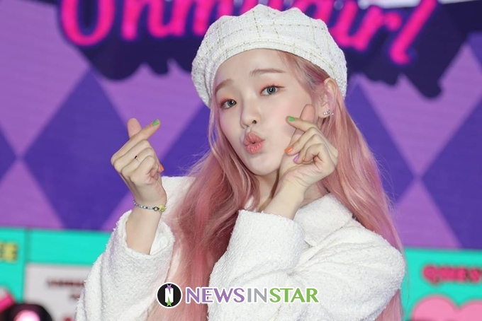 27일 오후 오마이걸(Oh My Girl) 아린, 승희, 지호, 효정, 비니, 유아, 미미의 미니 7집 앨범 ‘N(논스톱)’ 발매 기념 온라인 쇼케이스가 열려 오마이걸 승희가 포즈를 취하고 있다.