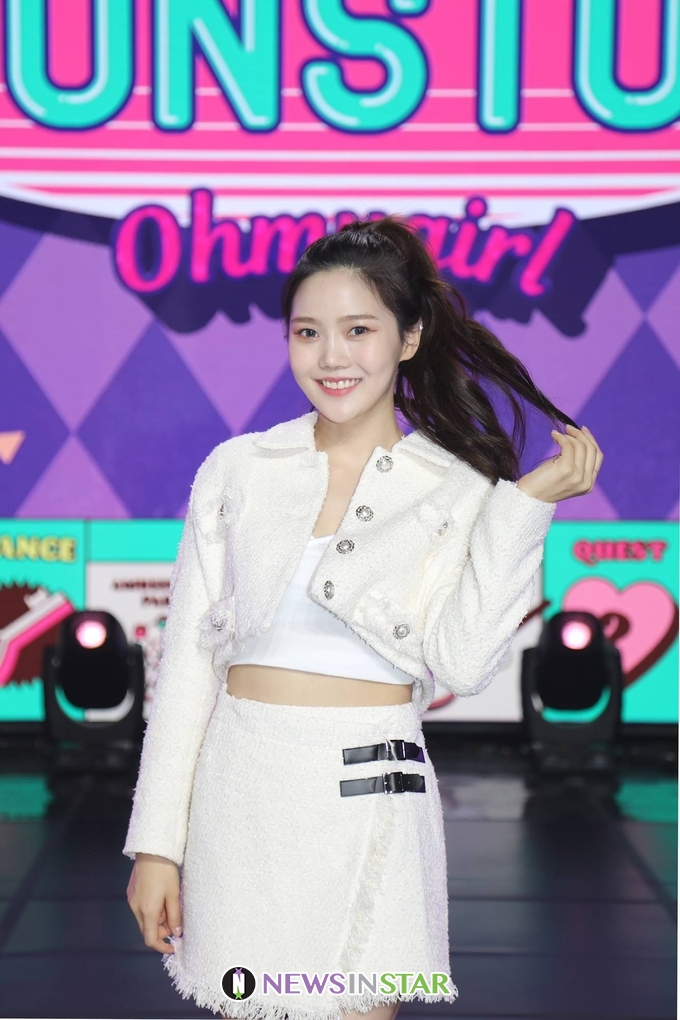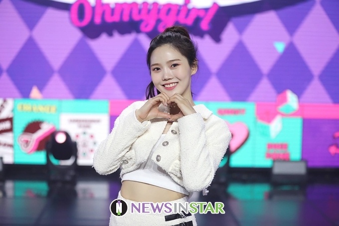 27일 오후 오마이걸(Oh My Girl) 아린, 승희, 지호, 효정, 비니, 유아, 미미의 미니 7집 앨범 ‘N(논스톱)’ 발매 기념 온라인 쇼케이스가 열려 오마이걸 효정이 포즈를 취하고 있다.