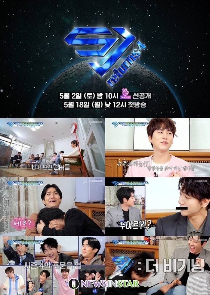 레전드 예능돌 슈퍼주니어의 ‘슈주 리턴즈4’는 5월 18일부터 매주 월, 수, 금 낮 12시에 V LIVE(V앱), 네이버TV ‘슈주 리턴즈’ 채널을 통해서 방송된다.