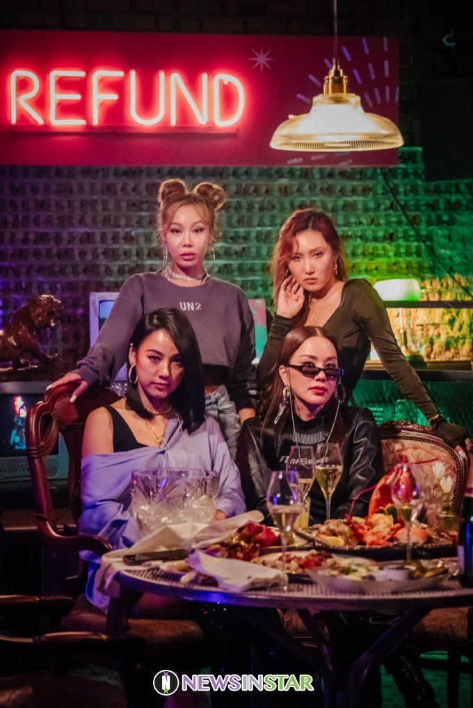 공개된 사진 속에는 선명하게 빛을 발하는 ‘REFUND(환불)’ 네온사인 아래 강렬한 아우라를 뿜어내는 ‘환불원정대’의 모습이 담겼다. 엄정화-린다G-제시-화사는 표정부터 의상, 헤어, 포즈까지 누구에게도 지지 않을 ‘환불원정대’의 강력한 포스를 발산하며 분위기를 압도한다.