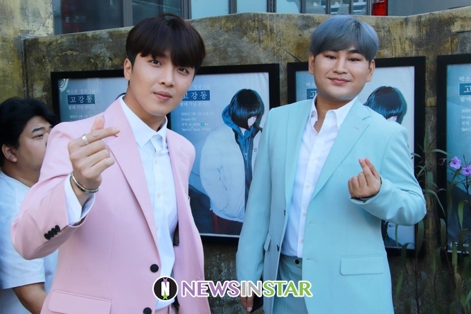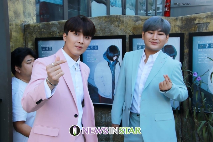 9월 26일(토) 오후 서울시 종로구 명륜동 한 스튜디오에서 진행된 트롯 아이돌 그룹 ‘미스터T’의 첫 미니앨범 ‘미스터T Vol.1’ 쇼케이스가 열려 강태관, 황윤성이 포토타임을 갖고 있다.