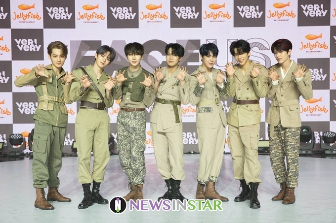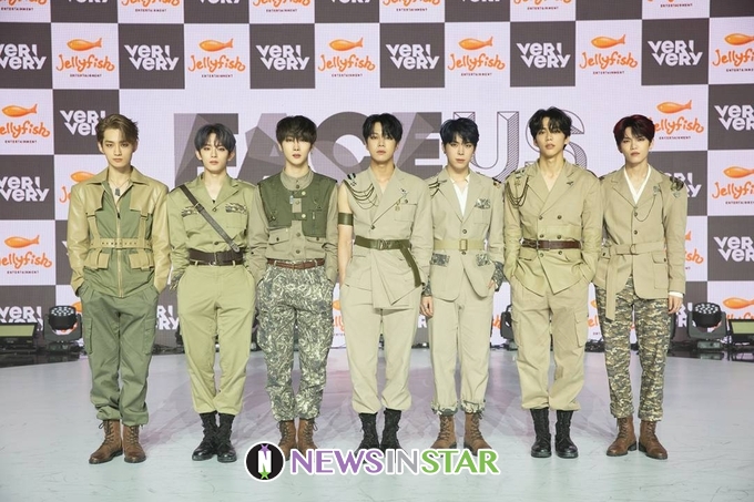 [뉴스인스타 양철수기자] 10월 13일(화) 오후 그룹 베리베리(VERIVERY) 동헌, 호영, 민찬, 계현, 연호, 용승, 강민의 다섯번째 미니앨범 ‘FACE US’ 발매 기념 미디어 온라인 쇼케이스가 열려 포토타임에 포즈를 취하고 있다.