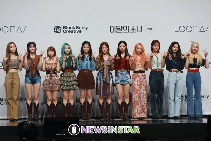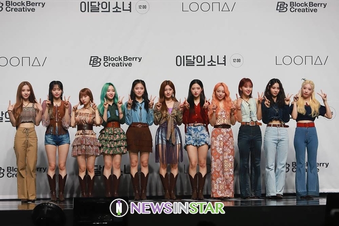 [뉴스인스타 양철수기자] 10월 19일(월) 오후 서울 용산구 한남동 블루스퀘어에서 열린 이달의 소녀(LOONA) 희진, 현진, 여진, 비비, 김립, 진솔, 최리, 이브, 츄, 고원, 올리비아 혜의 세 번재 미니앨범 ’12:00(미드나잇)’ 발매 쇼케이스가 열려 단체 포토타임을 갖고 있다.