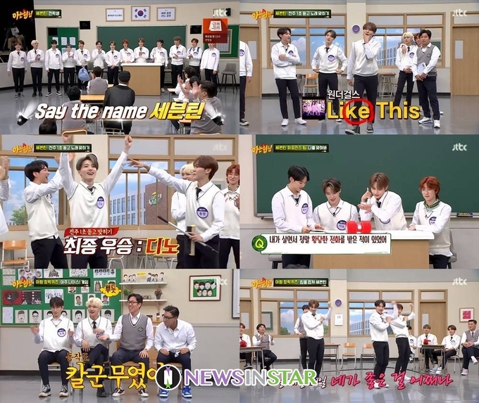 또한 과거 각각 샤이니, 원더걸스, 에이핑크의 팬이었던 호시, 승관, 디노는 자신들의 자존심을 걸고 ‘전주 1초 듣고 노래 맞히기’ 게임을 진행, K-POP 부교수님이라는 별명을 갖고 있는 승관의 활약 속에서 디노가 막판 뒤집기 100점이 걸린 에이핑크의 ‘LUV’를 극적으로 맞혀 한 편의 짜릿한 역전 드라마를 썼다.
