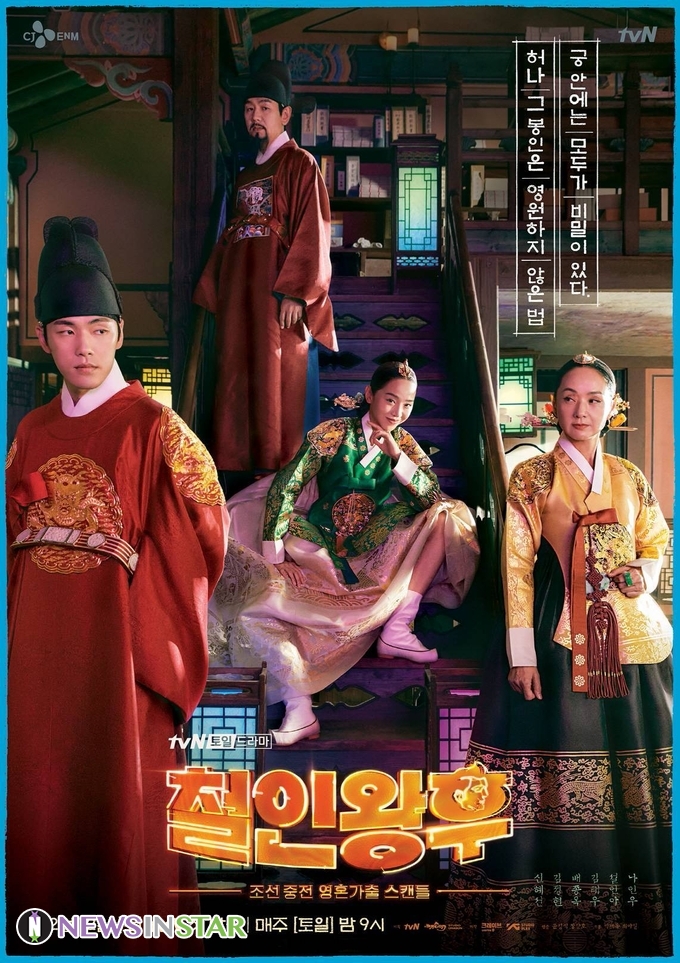 그런 가운데 공개된 단체 포스터 속 의미심장한 분위기가 호기심을 자극한다. “궁 안에는 모두가 비밀이 있다. 허나 그 봉인은 영원하지 않은 법”이라는 문구는 이들이 가진 비밀에 궁금증을 더한다. 먼저, ‘저 세상 스웨그’를 장착하고 허세 가득하게 앉아있는 중전 김소용의 모습이 시선을 강탈한다. 그녀의 비밀은 단아한 중전의 몸속에 현대의 허세 가득하고 혈기왕성한 ‘문제적 영혼(?)’이 깃들어 있다는 것. 엄격한 규율이 있는 조선 시대 왕실에 불시착한 그의 기상천외한 생존기가 신박한 웃음을 예고한다.