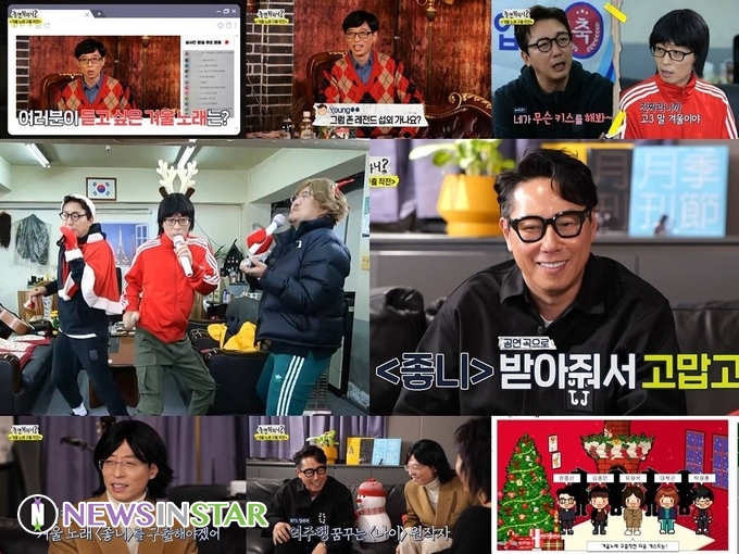 윤종신은 겨울에 어울리는 ‘나이’라는 곡을 추천했지만 유재석은 오로지 최애곡 ‘좋니’를 밀어붙여 웃음을 안겼다. “공연에 BTS도 나오냐. 같이 ‘나이’ 부르고 싶다”며 컬래버 욕망을 드러내는 윤종신과 “BTS 나오면 우리 다 쉬면 된다”는 유재석의 티키타카가 꿀잼을 유발했다.