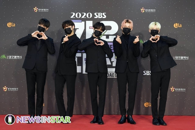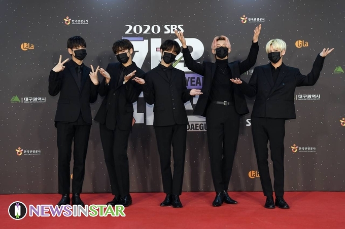12월 25일 오후 대구광역시에서 진행되는 2020 SBS 가요대전 in DAEGU' 레드카펫 행사가 열려 투모로우바이투게더(TXT) 수빈, 연준, 범규, 태현, 휴닝카이가 포토타임을 갖고 있다.