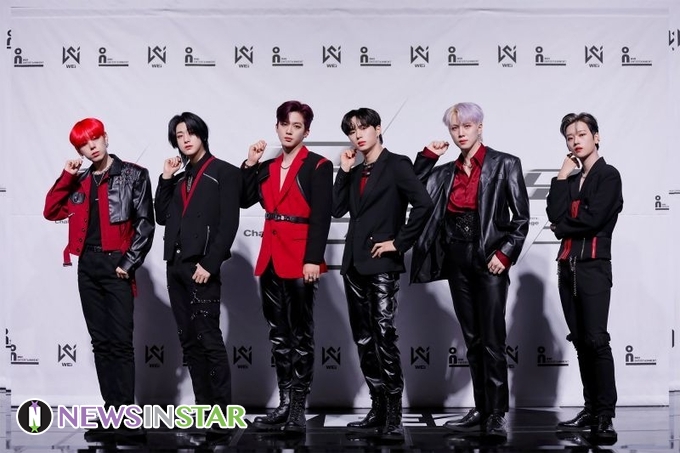2월 24일(수) 오후 온라인으로 진행된 그룹 위아이(WEi)의 두 번째 미니앨범 'IDENTITY : Challenge(아이덴티티 : 챌린지)' 발매 기념 쇼케이스에서 장대현, 김동한, 유용하, 김요한, 강석화, 김준서가 포토타임을 갖고 있다.
