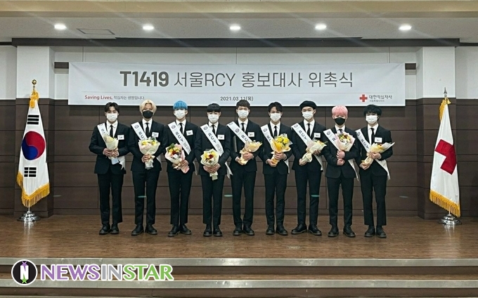 지난 11일, T1419(노아, 시안, 케빈, 건우, 레오, 온, 제로, 카이리, 키오)는 서울 성동구에 위치한 대한적십자사 서울지사에서 열린 위촉식에 참여해 서울 RCY 홍보대사 위촉장을 전달받았다.