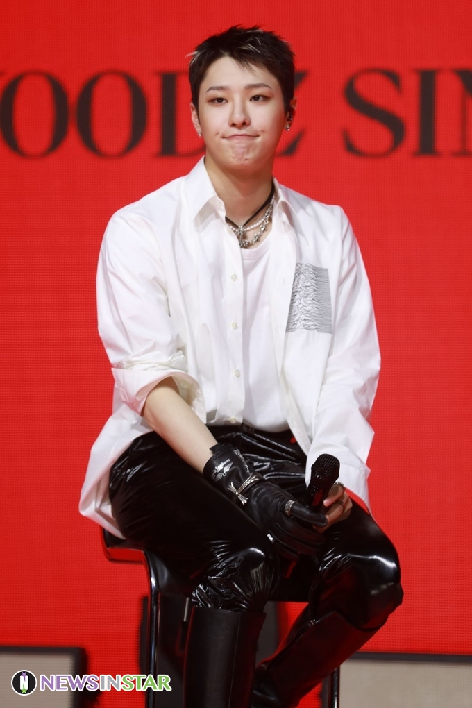 [뉴스인스타  양철수 기자]  3월 15일 오후, 우즈(WOODZ, 조승연) 새 싱글 앨범 ‘SET’ 발매기념 온라인 미디어 쇼케이스가 열려 우즈가 포토타임에 포즈를 취하고 있다.