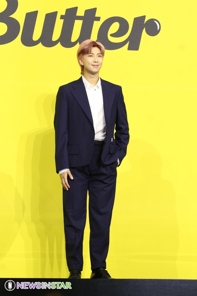 [뉴스인스타 양철수 기자] 5월 21일(금) 오후 서울시 송파구 올림픽공원 올림픽홀에서 열린 디지털싱글 'Butter(버터)' 발매 기념 글로벌 기자간담회에 그룹 방탄소년단(BTS) RM이 참석해 포즈를 취하고 있다.