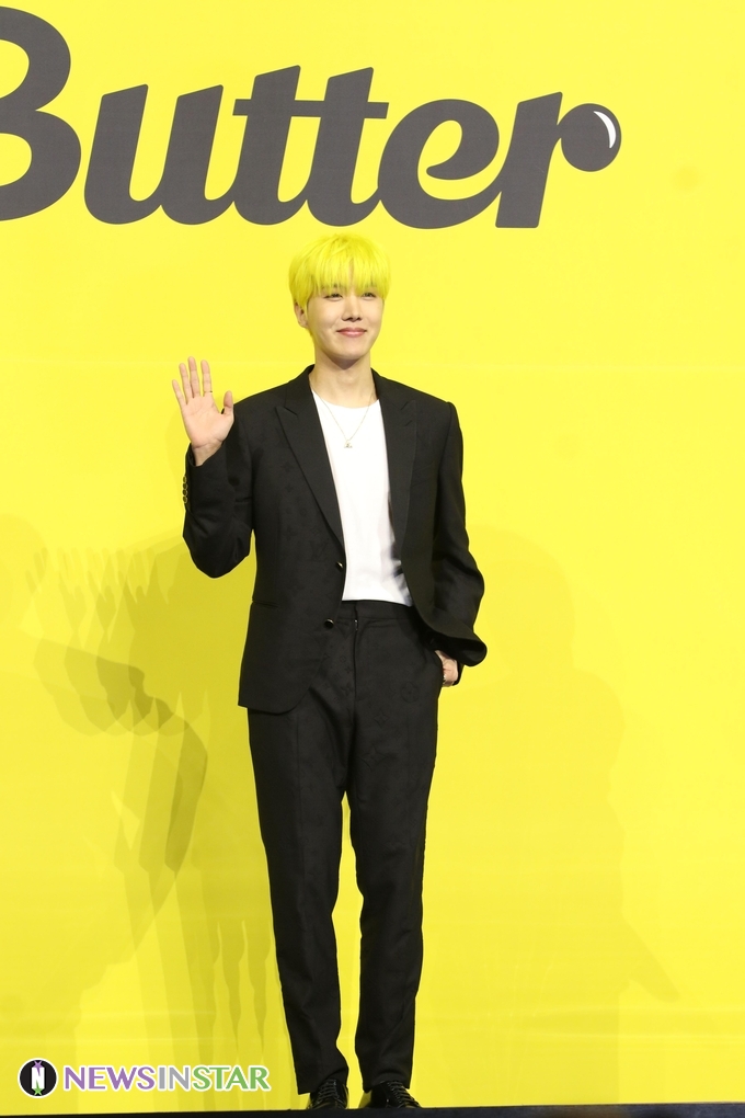 [뉴스인스타 양철수 기자] 5월 21일(금) 오후 서울시 송파구 올림픽공원 올림픽홀에서 열린 디지털싱글 'Butter(버터)' 발매 기념 글로벌 기자간담회에 그룹 방탄소년단(BTS) 제이홉이 참석해 포즈를 취하고 있다.