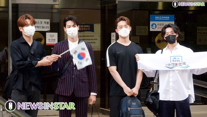 [뉴스인스타 양철수기자] 8월 15일(일) 오전, 서울시 영등포구 여의도 KBS홀에서 진행된 KBS 1TV 8.15 특별기획 ‘해양영토 더 큰 대한민국’ 생방송 출연을 마치고 팬텀싱어 레떼아모르(LETTEAMOR) 길병민, 김민석, 박현수, 김성식이 방송국을 나서며 포즈를 취하고 있다.