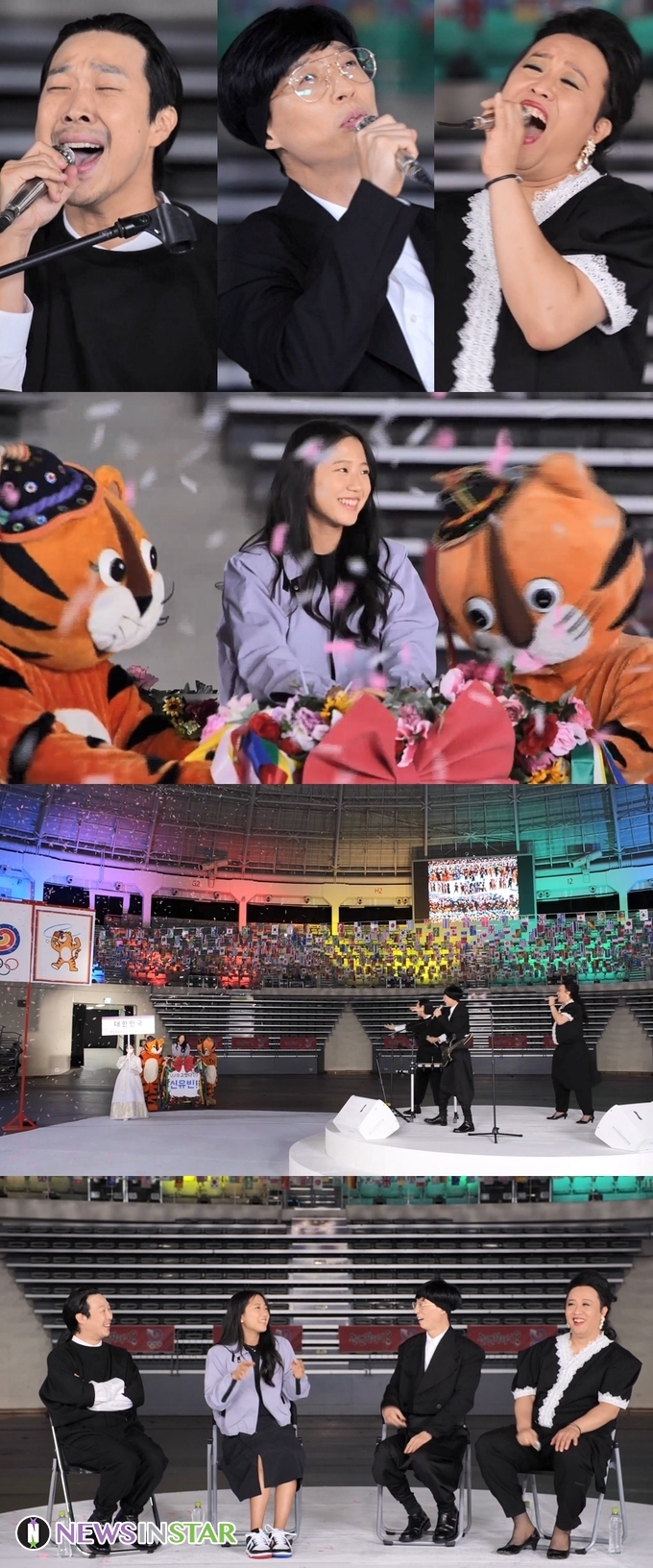 유재석, 정준하, 하하가 88서울올림픽의 주제가를 부른 ‘코리아나’로 변신해 신유빈 선수를 위한 환영의 무대를 준비한 모습과 마스코트 ‘호돌이’의 에스코트를 받으며 꽃가마를 타고 등장한 신유빈 선수의 모습이 함께 포착돼 시선을 사로잡는다.