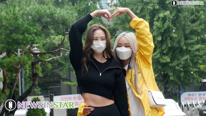 [뉴스인스타 양철수기자]  8월 24일(화) 오후 서울시 영등포구 여의도 KBS 공개홀에서 진행되는 KBS ‘유희열의 스케치북’ 녹화를 위해 그룹 씨스타 출신 효린, 다솜이 방송국에 도착해 포즈를 취하고 있다.